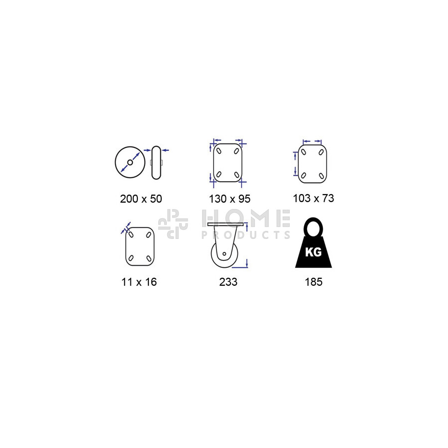 Fixed Castor metal RIM 200 mm