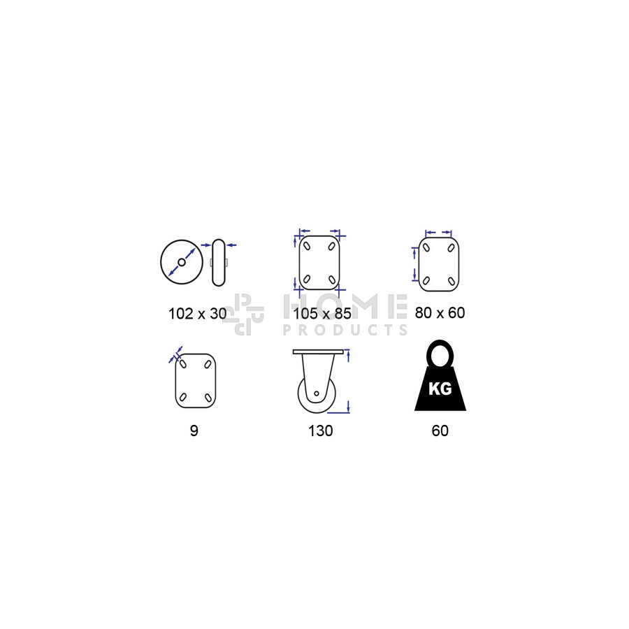 Hartafstand bevestigingsgaten (mm) 80 x 60