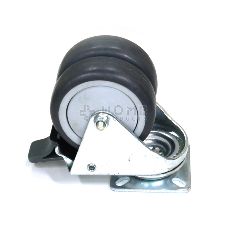 Zwenkwiel dubbel met rem, diameter van 75mm, plaatbevestiging, niet-strepende rubberband, draagvermogen tot 100KG